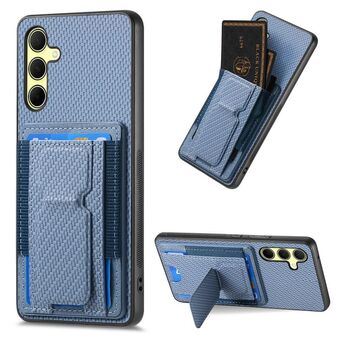 For Samsung Galaxy A54 5G Carbon Fiber Fold Stand Elastic Card Bag Phone Case(Blue)