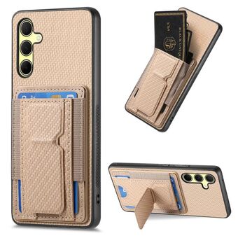 For Samsung Galaxy A54 5G Carbon Fiber Fold Stand Elastic Card Bag Phone Case(Khaki)