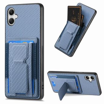 For Samsung Galaxy A04e Carbon Fiber Fold Stand Elastic Card Bag Phone Case(Blue)