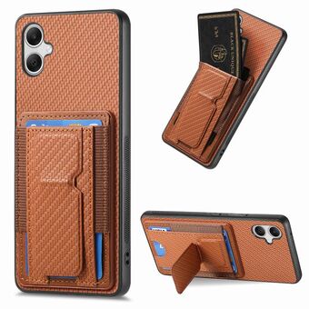 For Samsung Galaxy A04e Carbon Fiber Fold Stand Elastic Card Bag Phone Case(Brown)