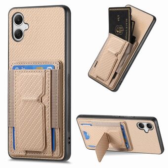 For Samsung Galaxy A04e Carbon Fiber Fold Stand Elastic Card Bag Phone Case(Khaki)