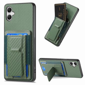For Samsung Galaxy A04e Carbon Fiber Fold Stand Elastic Card Bag Phone Case(Green)