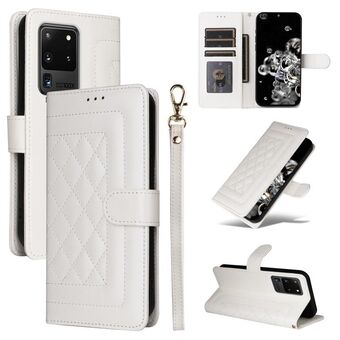 For Samsung Galaxy S20 Ultra Diamond Lattice Leather Flip Phone Case(White)