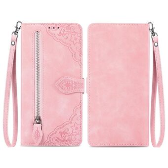 For Samsung Galaxy M15 Embossed Flower Zipper Leather Phone Case(Pink)