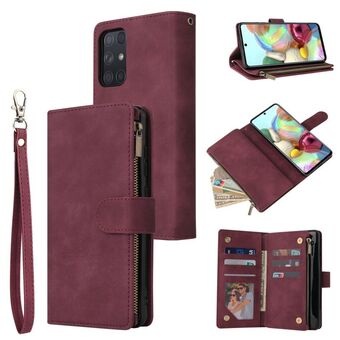 For Samsung Galaxy A72 5G Multifunctional Frosted Zipper Wallet Leather Phone Case(Wine Red)