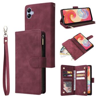 For Samsung Galaxy A04e Multifunctional Frosted Zipper Wallet Leather Phone Case(Wine Red)