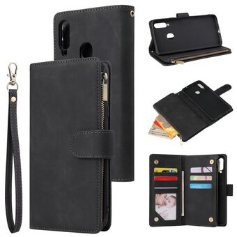 For Samsung Galaxy A20s Multifunctional Frosted Zipper Wallet Leather Phone Case(Black)