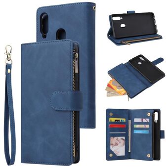 For Samsung Galaxy A20s Multifunctional Frosted Zipper Wallet Leather Phone Case(Blue)