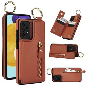 For Samsung Galaxy A72 5G Litchi Texture Zipper Double Buckle Card Bag Phone Case(Brown)