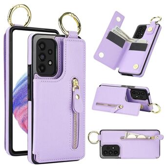 For Samsung Galaxy A73 5G Litchi Texture Zipper Double Buckle Card Bag Phone Case(Purple)