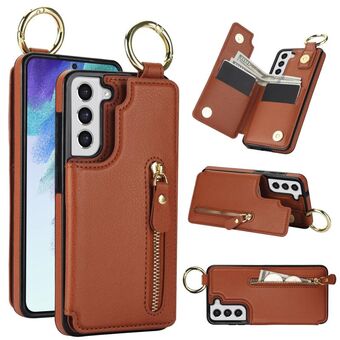 For Samsung Galaxy S21 FE 5G Litchi Texture Zipper Double Buckle Card Bag Phone Case(Brown)
