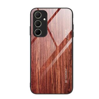 For Samsung Galaxy A35 5G Wood Grain Glass Phone Case(Dark Brown)
