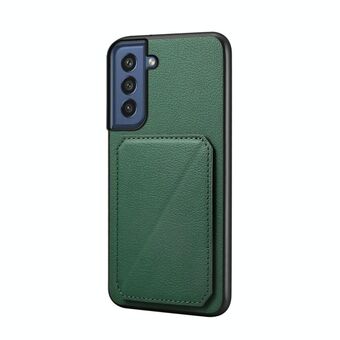 For Samsung Galaxy S21 FE 5G D04 Calf Texture Dual Card Slot Holder Phone Case(Green)