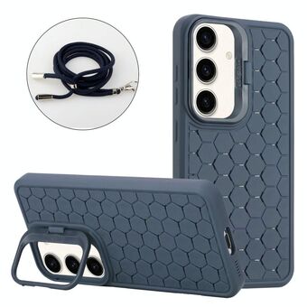 For Samsung Galaxy A34 5G Honeycomb Radiating Holder TPU Phone Case with Lanyard(Blue)