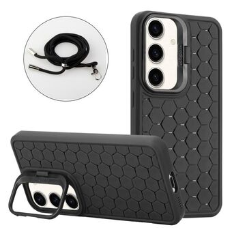 For Samsung Galaxy A54 5G Honeycomb Radiating Holder TPU Phone Case with Lanyard(Black)