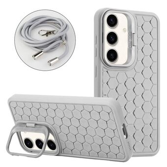For Samsung Galaxy A54 5G Honeycomb Radiating Holder TPU Phone Case with Lanyard(Grey)