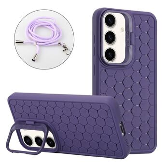 For Samsung Galaxy A24 5G Honeycomb Radiating Holder TPU Phone Case with Lanyard(Purple)
