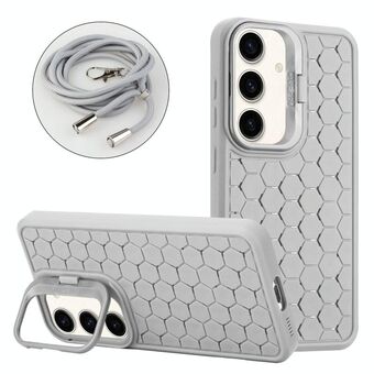 For Samsung Galaxy A25 5G Honeycomb Radiating Holder TPU Phone Case with Lanyard(Grey)