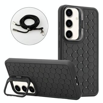 For Samsung Galaxy A14 4G/5G Honeycomb Radiating Holder TPU Phone Case with Lanyard(Black)