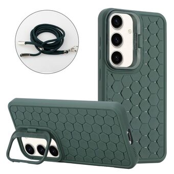 For Samsung Galaxy A35 5G Honeycomb Radiating Holder TPU Phone Case with Lanyard(Green)
