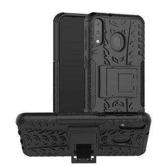 Tire Texture TPU+PC Shockproof Case for Galaxy M20, with Holder (Black)