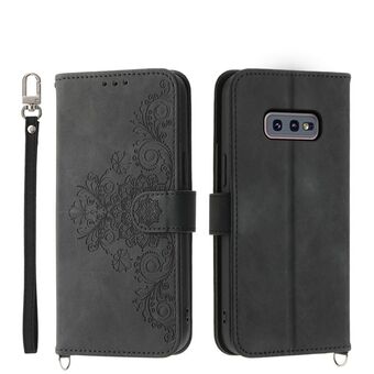 For Samsung Galaxy S10e Skin-feel Flowers Embossed Wallet Leather Phone Case(Black)