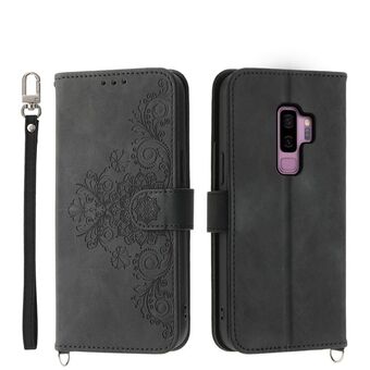 For Samsung Galaxy S9+ Skin-feel Flowers Embossed Wallet Leather Phone Case(Black)