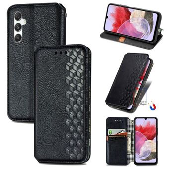 ForSamsung Galaxy M34 5G Cubic Grid Pressed Magnetic Leather Phone Case(Black)
