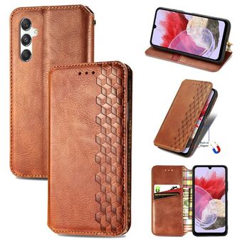 ForSamsung Galaxy M34 5G Cubic Grid Pressed Magnetic Leather Phone Case(Brown)