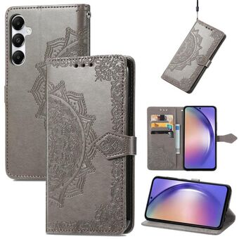 For Samsung Galaxy A55 5G Mandala Flower Embossed Leather Phone Case(Gray)