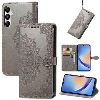 For Samsung Galaxy A35 5G Mandala Flower Embossed Leather Phone Case(Gray)