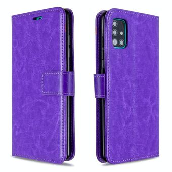 For Galaxy A51 Crazy Horse Texture Horizontal Flip Leather Case with Holder & Card Slots & Wallet & Photo Frame(Purple)