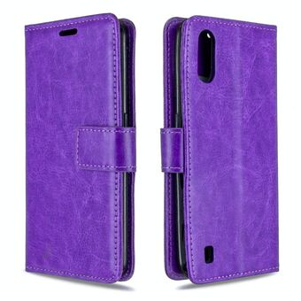 For Galaxy A01 Crazy Horse Texture Horizontal Flip Leather Case with Holder & Card Slots & Wallet & Photo Frame(purple)