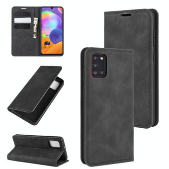 For Galaxy A31 Retro-skin Business Magnetic Suction Leather Case with Holder & Card Slots & Wallet(Black)