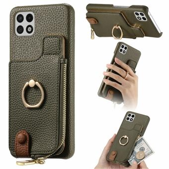 For Samsung Galaxy A22 4G Litchi Leather Oil Edge Ring Zipper Wallet Back Phone Case(Green)