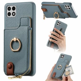 For Samsung Galaxy A22 5G Litchi Leather Oil Edge Ring Zipper Wallet Back Phone Case(Blue)
