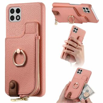 For Samsung Galaxy A22 5G Litchi Leather Oil Edge Ring Zipper Wallet Back Phone Case(Pink)