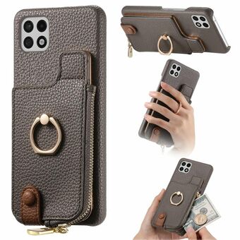 For Samsung Galaxy A22 5G Litchi Leather Oil Edge Ring Zipper Wallet Back Phone Case(Grey)