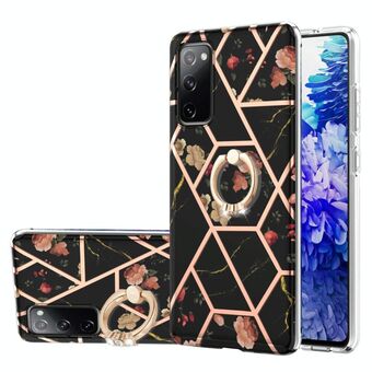 For Samsung Galaxy S20 FE / S20 Lite Electroplating Splicing Marble Flower Pattern TPU Shockproof Case with Rhinestone Ring Holder(Black Flower)
