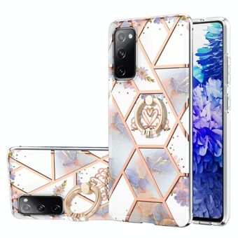For Samsung Galaxy S20 FE / S20 Lite Electroplating Splicing Marble Flower Pattern TPU Shockproof Case with Rhinestone Ring Holder(Imperial Crown)