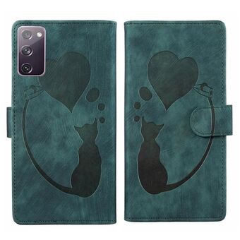 Θήκη τηλεφώνου Samsung Galaxy S20 FE 5G από δέρμα με ανάγλυφο σχέδιο καρδιάς και γάτας (Πορτοκαλί)