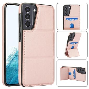 For Samsung Galaxy S21+ 5G Tri-fold Holder Leather Phone Case with Card Slot(Rose Gold)