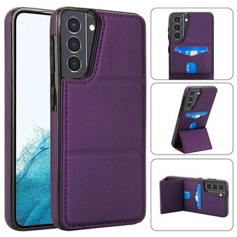 For Samsung Galaxy S21+ 5G Tri-fold Holder Leather Phone Case with Card Slot(Dark Purple)