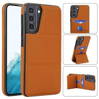 For Samsung Galaxy S21+ 5G Tri-fold Holder Leather Phone Case with Card Slot(Brown)