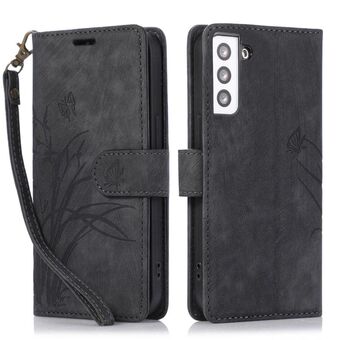 For Samsung Galaxy S21+ 5G Orchid Butterfly Embossed Leather Phone Case(Black)