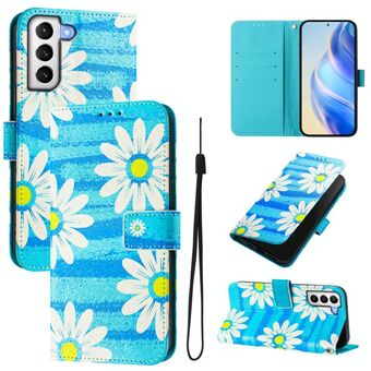 For Samsung Galaxy S21+ 5G Art Colored Drawing Pattern Leather Phone Case(Blue daisy)