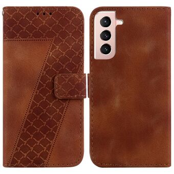 For Samsung Galaxy S21+ 5G Seven-shaped Embossed Leather Phone Case(Brown)