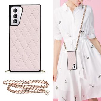 For Samsung Galaxy S21+ 5G Elegant Rhombic Pattern Microfiber Leather +TPU Shockproof Case with Crossbody Strap Chain(Pink)