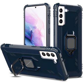 For Samsung Galaxy S21+ 5G Carbon Fiber Protective Case with 360 Degree Rotating Ring Holder(Blue)