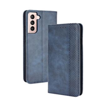 For Samsung Galaxy S21+ 5G Magnetic Buckle Retro Crazy Horse Texture Horizontal Flip Leather Case with Holder & Card Slots & Photo Frame(Blue)